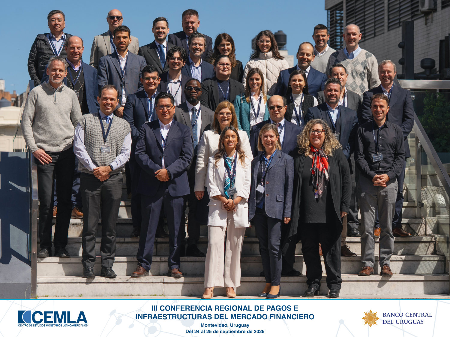 La Dirección de Infraestructuras del Mercado Financiero del CEMLA, en conjunto con el Banco Central del Uruguay, organizó la III Conferencia Regional sobre Pagos e Infraestructuras del Mercado Financiero. La conferencia se llevó a cabo en formato híbrido del 24 al 25 de septiembre de 2025 y contó con la participación de 99 representantes de 31 instituciones y asociados del CEMLA, en representación de 26 países.